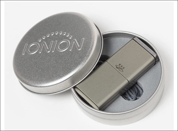 携帯がより簡単になる付属の缶ケース追加。旅行時にも安心。LEDライトをダークブルーに。首にかける紐を安定感が増す形状に変更など。マイナスイオン発生量69万個/cm3(立方センチメートル)。